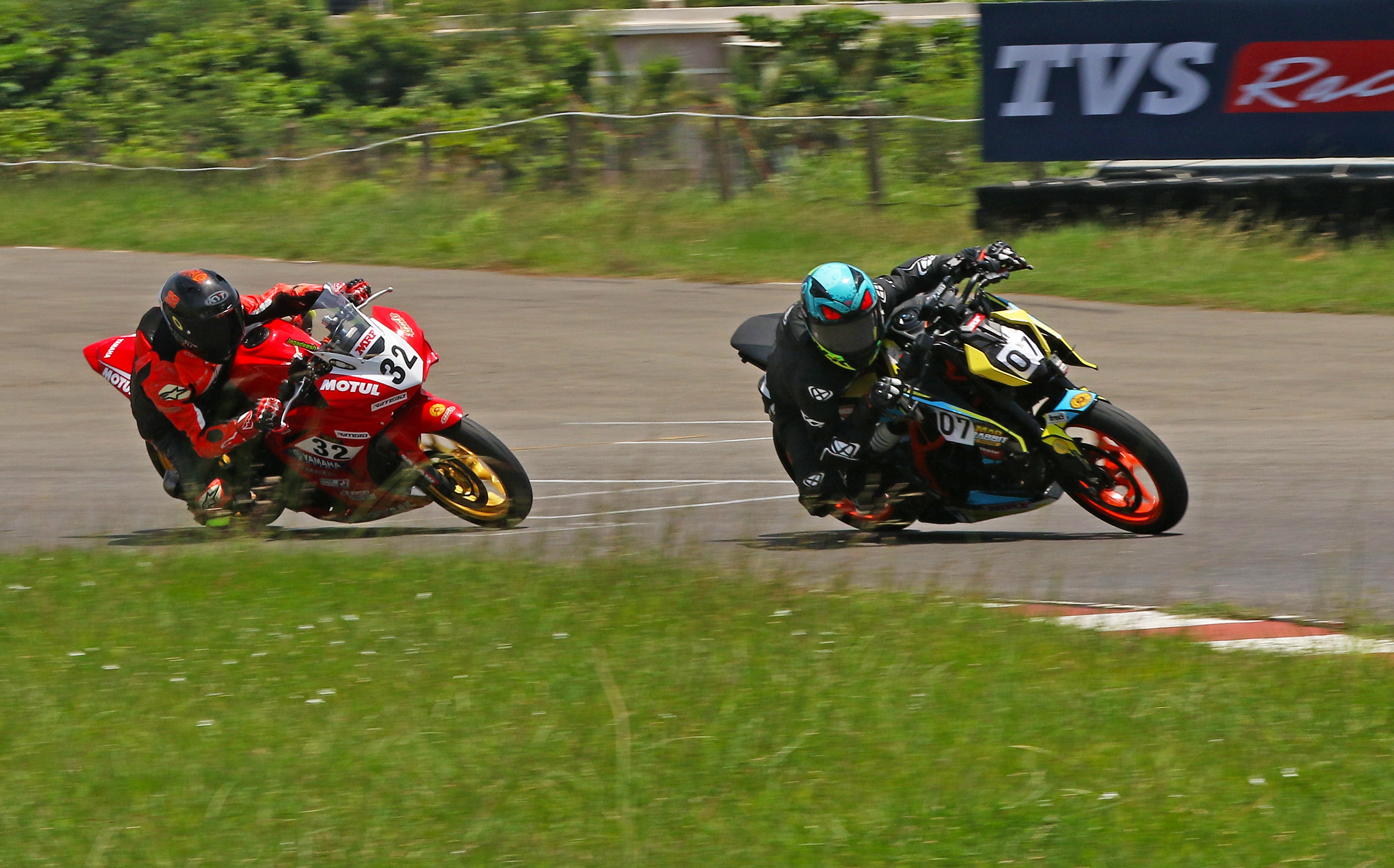 The highlight of the day’s proceedings was the Pro-Stock 301-400cc Open race that developed into a straight fight between championship leader Rahil Pillarisetty from Hyderabad on a Yamaha R3 and Sarthak astride the factory-supported TVS Apache RR 310. Through the season, the duo has produced a slugfest resulting in exciting finishes. After three rounds, both have won three races apiece.
