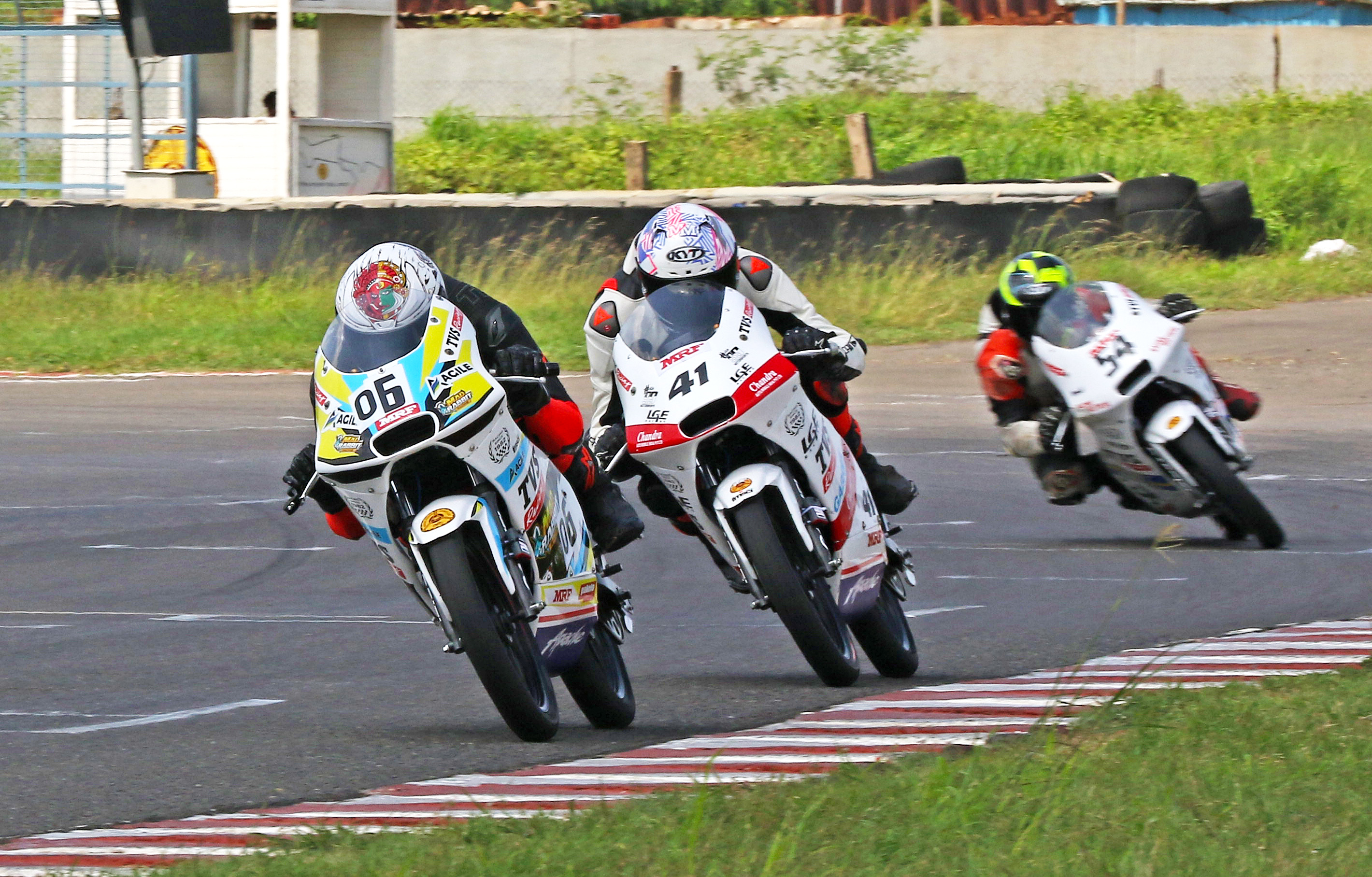 The third win of the season took Sarthak within nine points of yesterday’s Race-1 winner, Rahil Pillarisetty (RACR Castrol Power1) who, recovering from an off-track incursion following a contact with another rider, managed to finish second ahead of team-mate Rajini Krishnan.